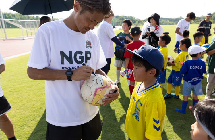 サッカー教室のあとは、選手それぞれが子どもたちへ想いを込めた挨拶を行い、GOALの贈呈式を実施。続くサイン会や握手会では、時間が許す限り子どもたち一人ひとりと触れ合うことができました。子どもたちとのサッカー教室を通し、非常に貴重で心に残る一日となりました。香川県の皆様、本当にありがとうございました。