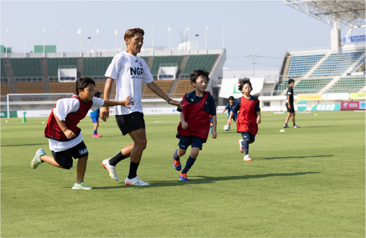 × 佐藤晃大CCO によるスペシャルトークショーも開催。古巣サポーターの皆様に温かく迎えていただきました。さらに、徳島ヴォルティス対藤枝MYFC戦のキックオフ前には、サポーターの熱気に包まれる中、「NIWA GOAL PROJECT」サッカーゴール寄贈セレモニーとご挨拶を行いました。試合前のピッチ外周では多くのサポーターの皆様から声援をいただき、古巣への凱旋として非常に感慨深く、忘れられない一日となりました。徳島県鳴門市の皆様、徳島ヴォルティスのサポーターの皆様、本当にありがとうございました。