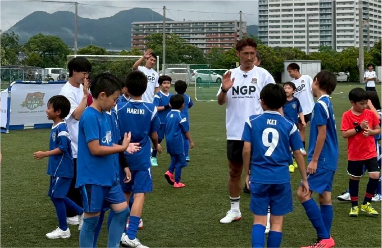 2025年6月25日、NIWA GOAL PROJECTの活動として、福岡県福岡市の福岡フットボールセンター にて、サッカー教室を開催いたしました。当日は、元アビスパ福岡の丹羽大輝選手をはじめ、現役アビスパ福岡の紺野和也選手、そして元アビスパ福岡の田辺草民選手、末吉隼也選手らが参加。福岡県やアビスパ福岡にゆかりのある選手一同が集まり、かつての仲間と子供達の為に特別な時間を過ごす事が出来ました。