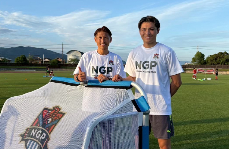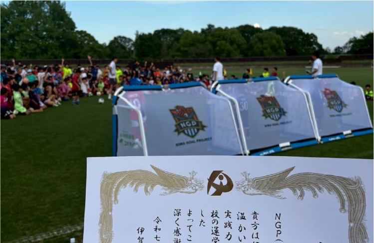 その後、2025年度NGPの第1会場目となる伊賀市・上野運動公園競技場にてサッカー教室を開催。今回寄贈した4基のサッカーゴールを活用し、小学1年生から6年生まで約150名の子どもたちと一緒に、サッカー教室やミニゲーム大会を行いました。