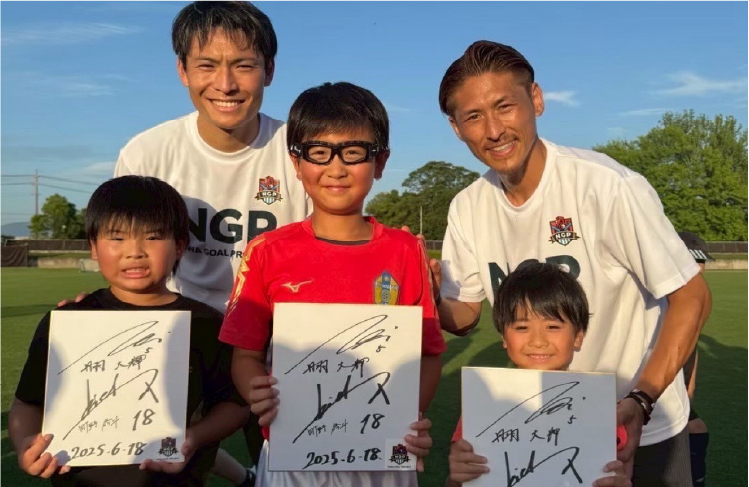 参加者は町野選手の地元・伊賀市の子どもたちに限定し、子どもたちにとっても、また町野選手にとっても特別な機会となりました。サッカー教室の後にはジャンケン大会やサイン会を実施し、最後には伊賀市教育委員会・教育長様より今回のNGPの活動に対する感謝状をいただくことが出来ました。三重県伊賀市の皆様、有難うございました。